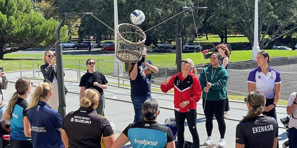 Shooting goals at the old basket set up in the Auckland Domain gave Mystics captain Michaela Sokolich-Beatson pause to think about “all the amazing people that paved the way for us to be standing here today celebrating 100 years – it’s actually really special.”
